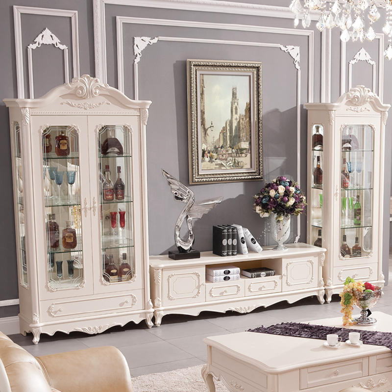 奥迪克简约欧式风格实木茉莉花白色系列客厅摆放储物组合柜MK-530