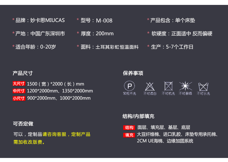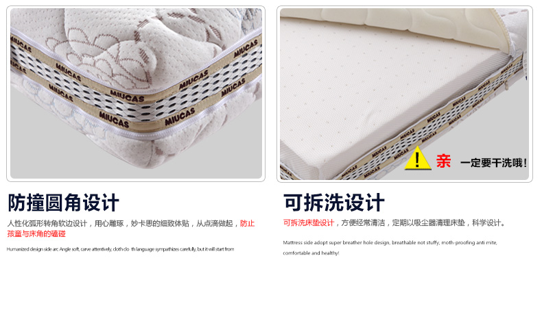 MIUCAS/妙卡思土耳其恒温面料儿童床垫 可拆洗进口乳胶弹簧席梦思M-008