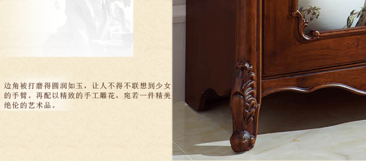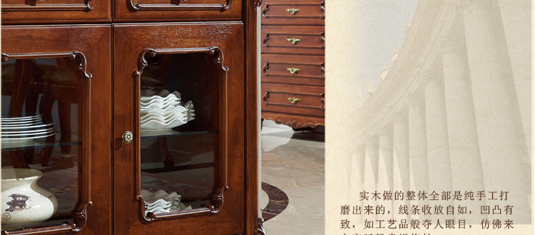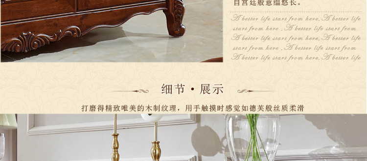 采用美国认证高标准原木为主材;经济实惠又环保。国内知名设计师独家设计;中西方文化合并的极致之做;具有中式的节约;同时也不失西式的华贵优雅;十分庄重。一流的工艺水准,坚实稳固,经典隽永;线条流畅,曲致玲珑;衬托家中风格韵味!