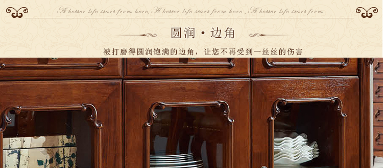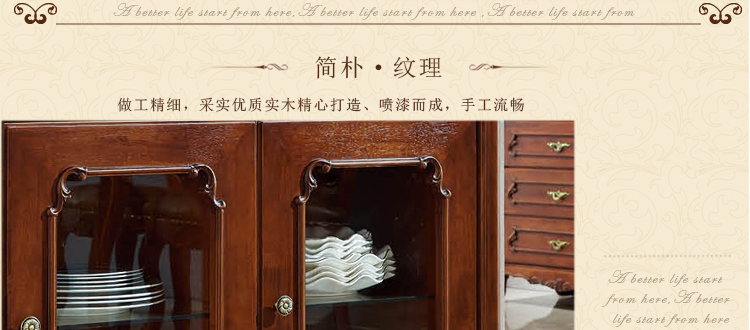 金亿宝美式乡村实木餐边柜碗柜橱茶水柜复古酒柜厨房储物置物柜餐柜318