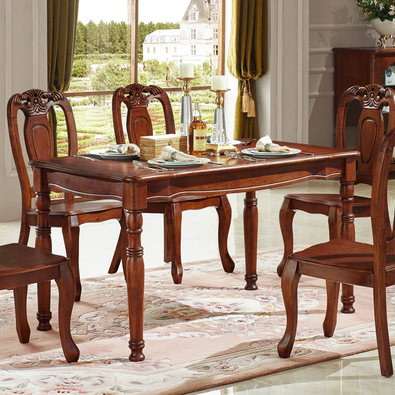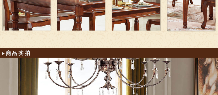 金亿宝美式实木餐桌实木板面美式复古长餐台餐厅吃饭桌子古典312