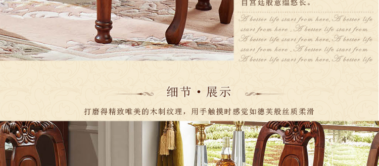 采用美国认证高标准原木为主材;经济实惠又环保。国内知名设计师独家设计;中西方文化合并的极致之做;具有中式的节约;同时也不失西式的华贵优雅;十分庄重。一流的工艺水准,坚实稳固,经典隽永;线条流畅,曲致玲珑;衬托家中风格韵味!