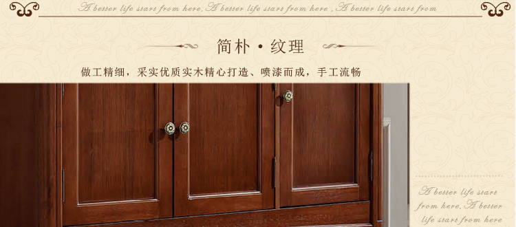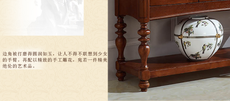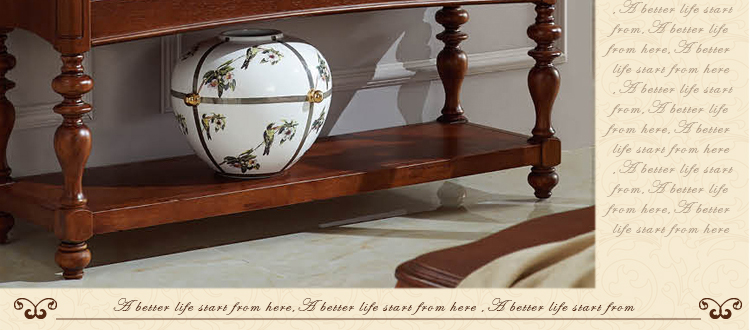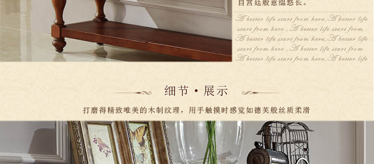 采用美国认证高标准原木为主材;经济实惠又环保。国内知名设计师独家设计;中西方文化合并的极致之做;具有中式的节约;同时也不失西式的华贵优雅;十分庄重。一流的工艺水准,坚实稳固,经典隽永;线条流畅,曲致玲珑;衬托家中风格韵味!