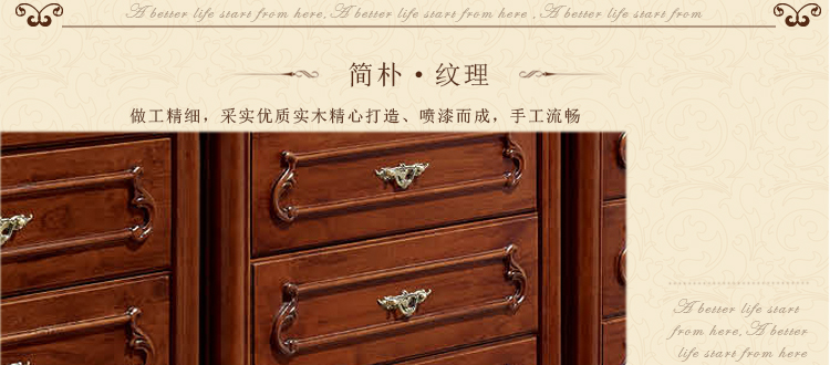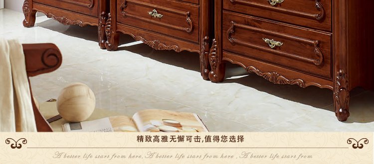 采用美国认证高标准原木为主材;经济实惠又环保。国内知名设计师独家设计;中西方文化合并的极致之做;具有中式的节约;同时也不失西式的华贵优雅;十分庄重。一流的工艺水准,坚实稳固,经典隽永;线条流畅,曲致玲珑;衬托家中风格韵味!