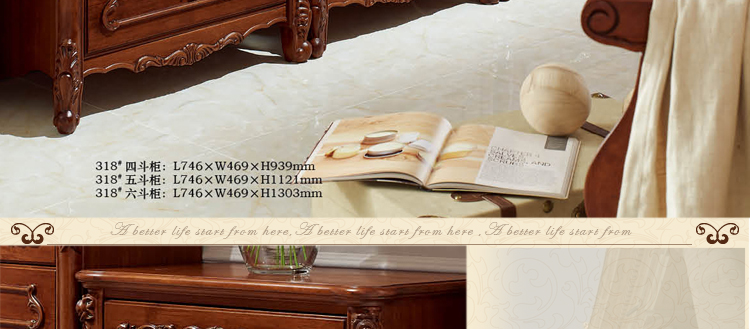 外围尺寸:四斗柜:746*469*939 五斗柜:746*469*1121 六斗柜:746*469*1303