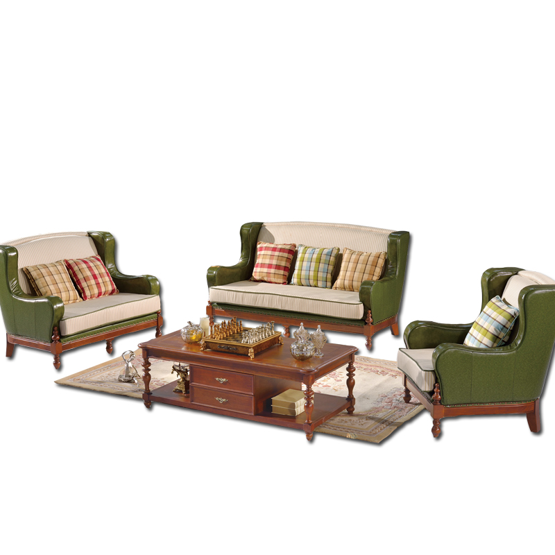 金亿宝小美式风格皮布结合沙发高档客厅1+2+3沙发组合301