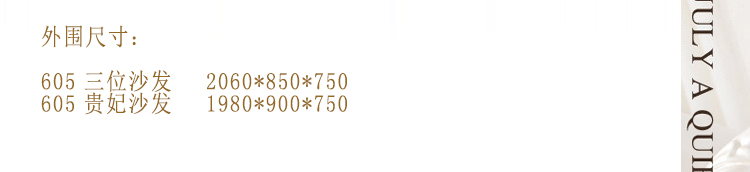 外围尺寸:605三位沙发2060*850*750; 605贵妃沙发1980*900*750。