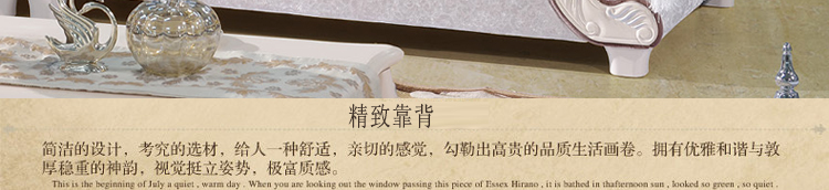 简欧风格家具特点讲究手工精细的裁切雕刻,轮廓和转折部分由对称而富有节奏感的曲线或曲面构成,结构简练,线条流畅,色彩富丽,艺术感强,给人的整体感觉是华贵优雅,十分庄重。
