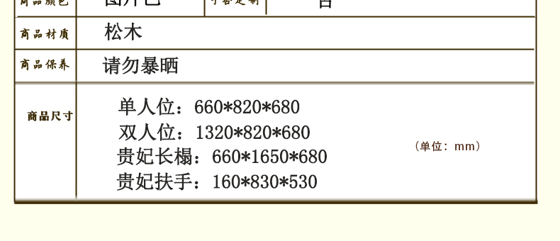 尺寸:贵妃单人位 660*820*680 贵妃双人位 1320*820*680 贵妃长榻 660*1650*680 贵妃扶手 160*830*530