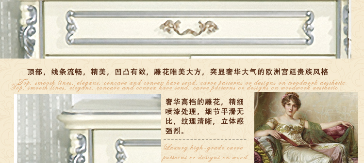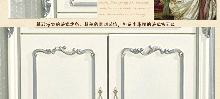 厂家直销--品质保证--售后无忧:1、实木抽屉,更绿色。2、E1环保密度板材柜体。3、每块板材四周封边处理。4、优质五金配件。5、内置更多层储物空间和通风透气孔。6、象牙白烤漆(含侧板),品质细节更完美到位。