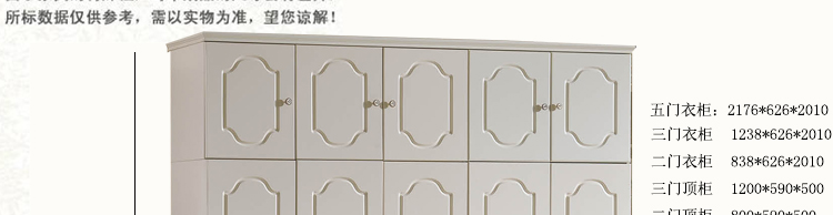 外围尺寸: 三门衣柜 1238*626*2010 二门衣柜 838*626*2010 三门顶柜 1200*590*500 二门顶柜 800*590*500