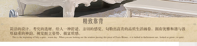 简欧风格家具特点讲究手工精细的裁切雕刻,轮廓和转折部分由对称而富有节奏感的曲线或曲面构成,结构简练,线条流畅,色彩富丽,艺术感强,给人的整体感觉是华贵优雅,十分庄重