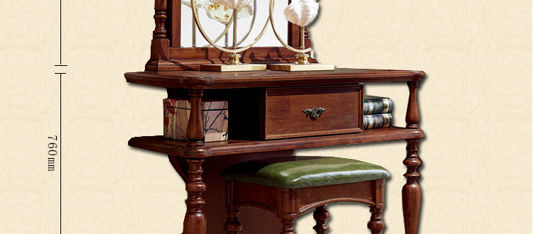 金亿宝实木妆台欧式梳妆台卧室美式小户型化妆台简约现代305