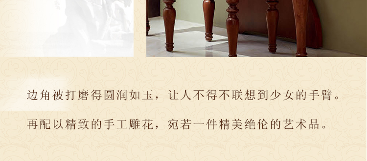 采用美国认证高标准原木为主材;经济实惠又环保。国内知名设计师独家设计;中西方文化合并的极致之做;具有中式的节约;同时也不失西式的华贵优雅;十分庄重。一流的工艺水准,坚实稳固,经典隽永;线条流畅,曲致玲珑;衬托家中风格韵味!