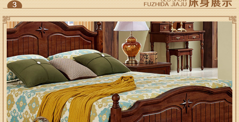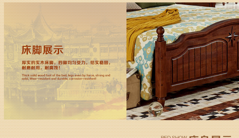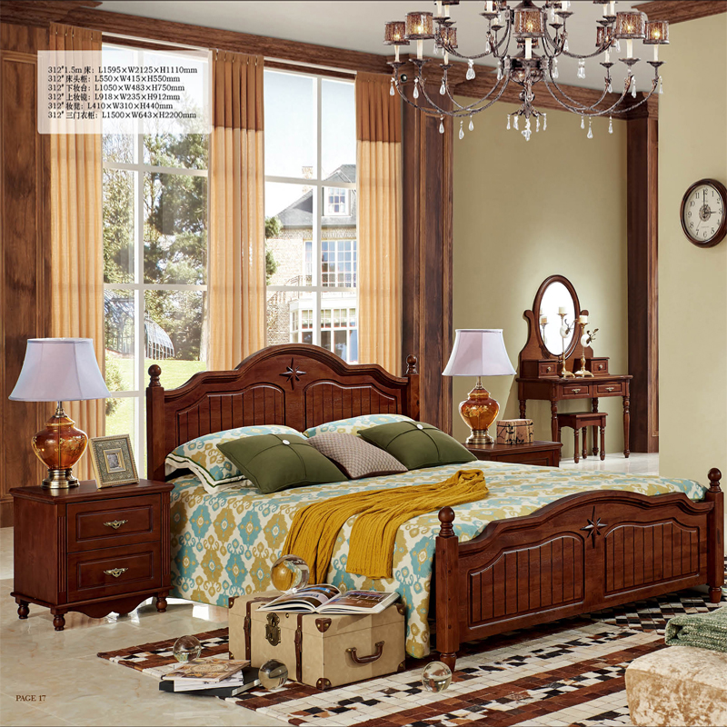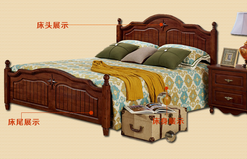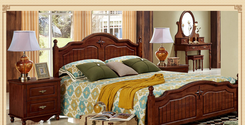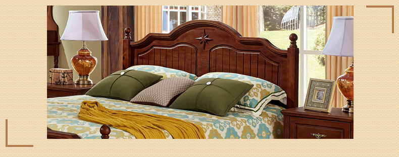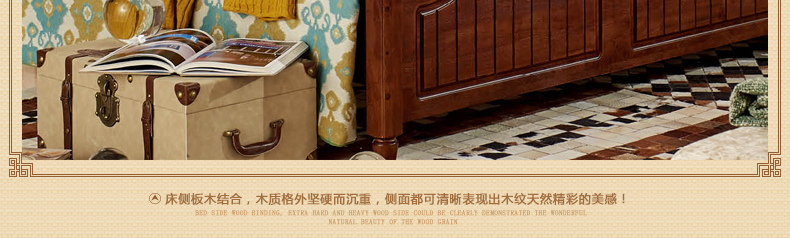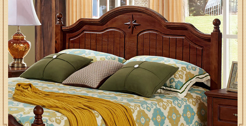 金亿宝美式床全实木 乡村复古仿古纯实木雕花田园深色双人床1.8特价312