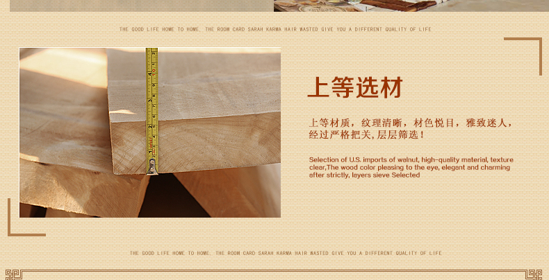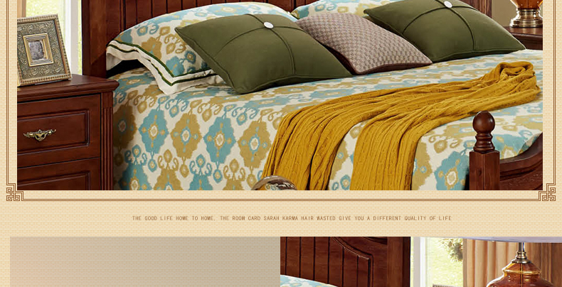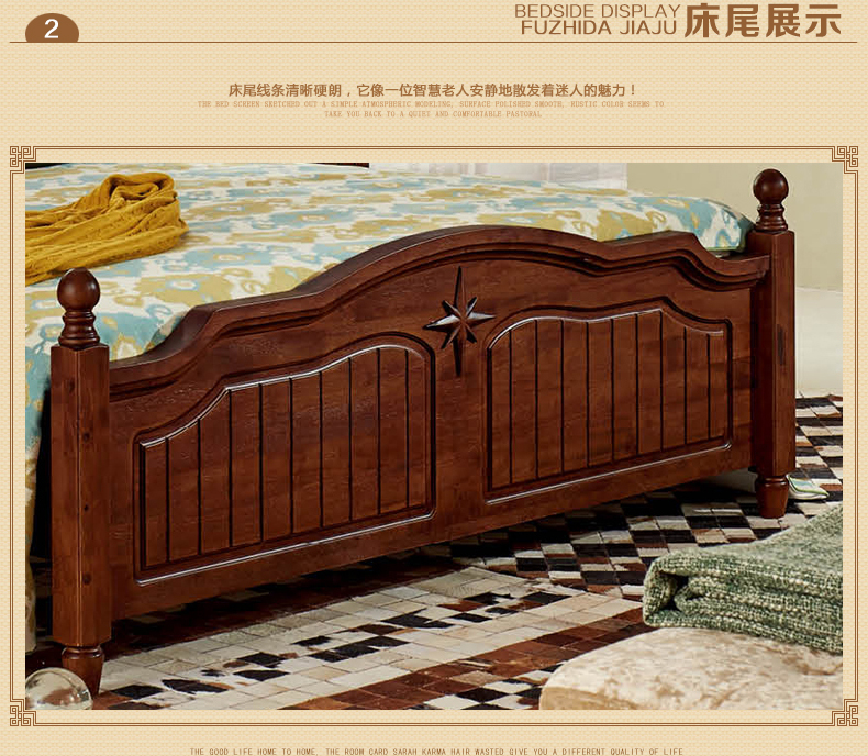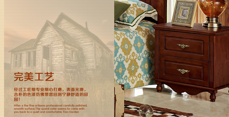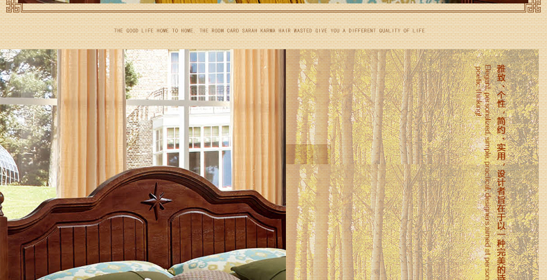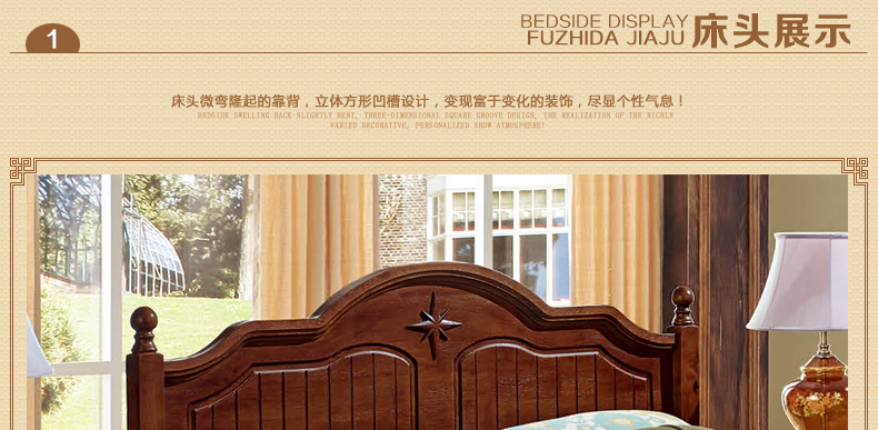 采用美国认证高标准原木为主材;经济实惠又环保。国内知名设计师独家设计;中西方文化合并的极致之做;具有中式的节约;同时也不失西式的华贵优雅;十分庄重。一流的工艺水准,坚实稳固,经典隽永;线条流畅,曲致玲珑;衬托家中风格韵味!