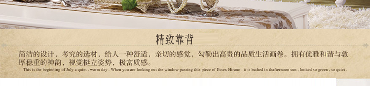 简欧风格家具特点讲究手工精细的裁切雕刻,轮廓和转折部分由对称而富有节奏感的曲线或曲面构成,结构简练,线条流畅,色彩富丽,艺术感强,给人的整体感觉是华贵优雅,十分庄重