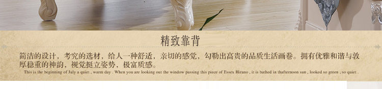 简欧风格家具特点讲究手工精细的裁切雕刻,轮廓和转折部分由对称而富有节奏感的曲线或曲面构成,结构简练,线条流畅,色彩富丽,艺术感强,给人的整体感觉是华贵优雅,十分庄重
