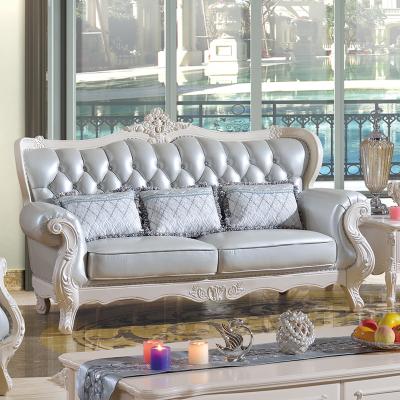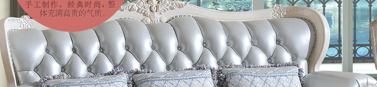 金亿宝简约欧式风格实木雕花皮艺沙发客厅真皮沙发组合818A