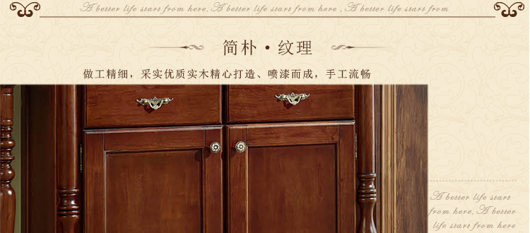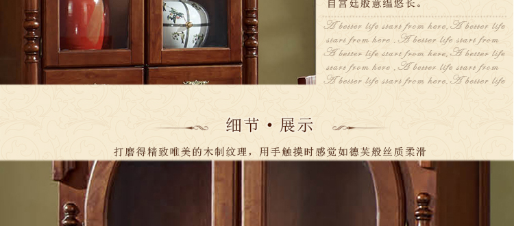 采用美国认证高标准原木为主材;经济实惠又环保。国内知名设计师独家设计;中西方文化合并的极致之做;具有中式的节约;同时也不失西式的华贵优雅;十分庄重。一流的工艺水准,坚实稳固,经典隽永;线条流畅,曲致玲珑;衬托家中风格韵味!