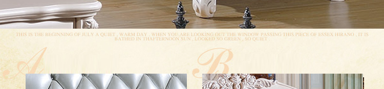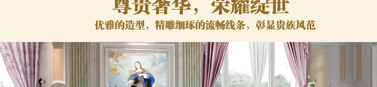 欧式风格家具特点讲究手工精细的裁切雕刻,轮廓和转折部分由对称而富有节奏感的曲线或曲面构成,结构简练,线条流畅,色彩富丽,艺术感强,给人的整体感觉是华贵优雅,十分庄重