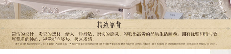 简欧风格家具特点讲究手工精细的裁切雕刻,轮廓和转折部分由对称而富有节奏感的曲线或曲面构成,结构简练,线条流畅,色彩富丽,艺术感强,给人的整体感觉是华贵优雅,十分庄重