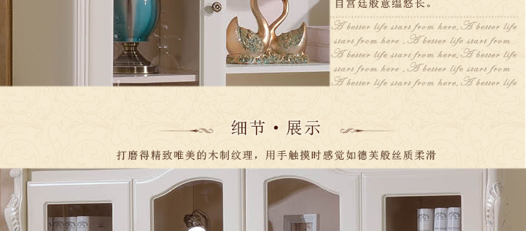 采用美国认证高标准原木为主材;经济实惠又环保。国内知名设计师独家设计;中西方文化合并的极致之做;具有中式的节约;同时也不失西式的华贵优雅;十分庄重。一流的工艺水准,坚实稳固,经典隽永;线条流畅,曲致玲珑;衬托家中风格韵味!
