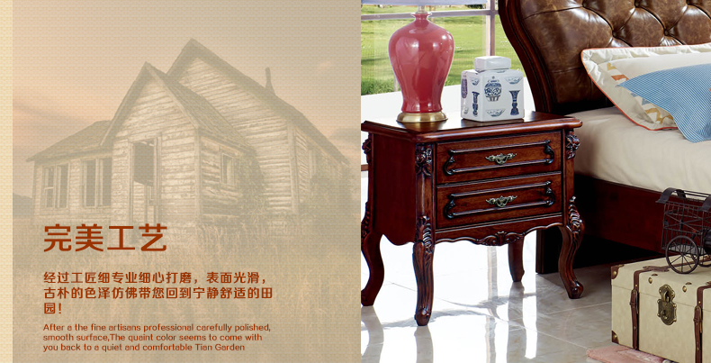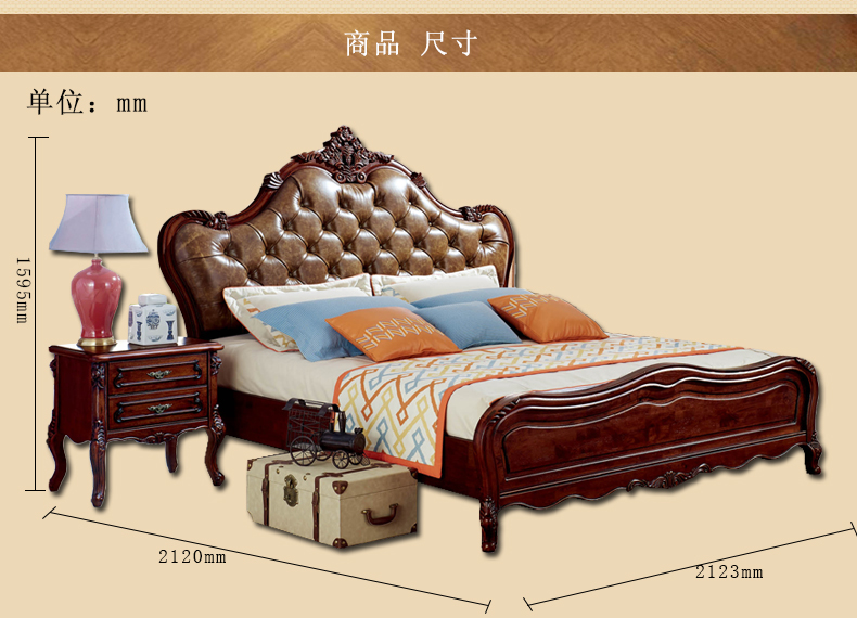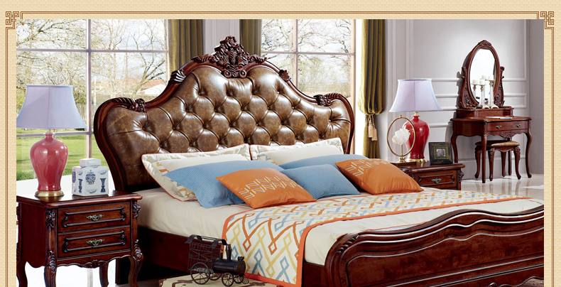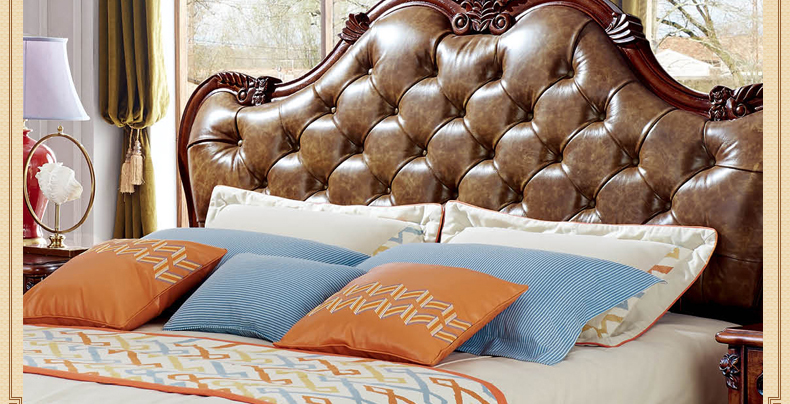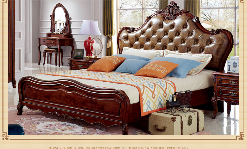 金亿宝美式床实木床美式乡村公主床双人床1.8米床真皮床318