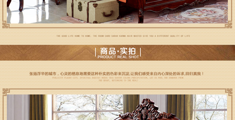 采用美国认证高标准原木为主材;经济实惠又环保。国内知名设计师独家设计;中西方文化合并的极致之做;具有中式的节约;同时也不失西式的华贵优雅;十分庄重。一流的工艺水准,坚实稳固,经典隽永;线条流畅,曲致玲珑;衬托家中风格韵味!