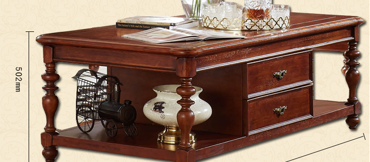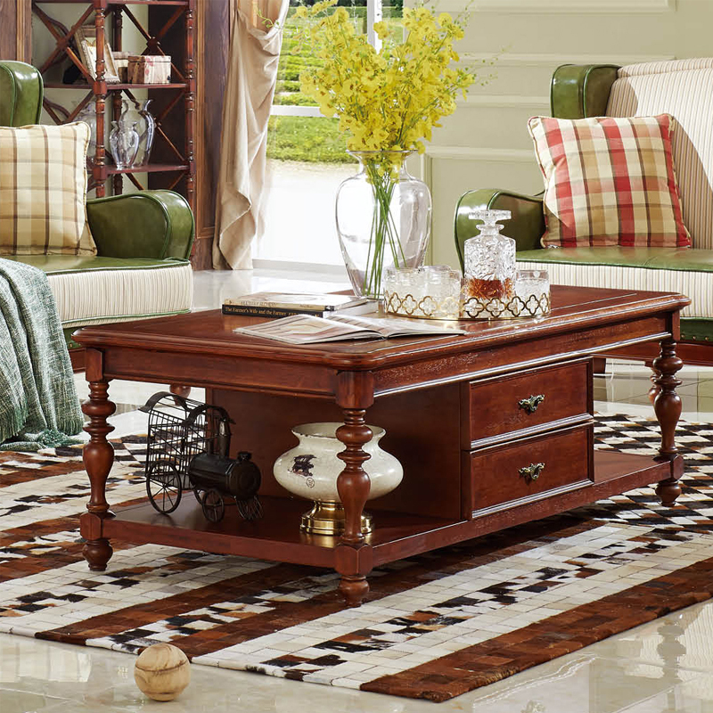 金亿宝简约长方形美式乡村实木茶几小户型客厅家具储物茶桌301