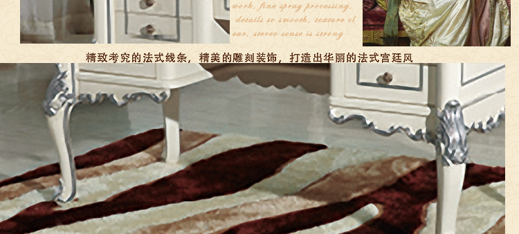 书桌和椅子到货摆好了,尺寸刚好,放在卧室很好看。欧式的风格和家里的装修特别搭。用用看质量怎么样吧,做工看着还行