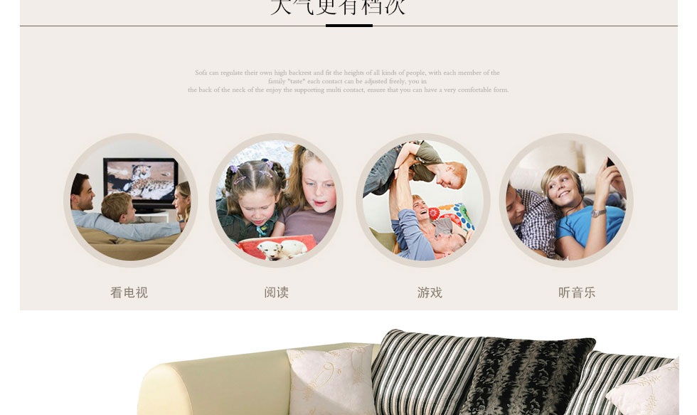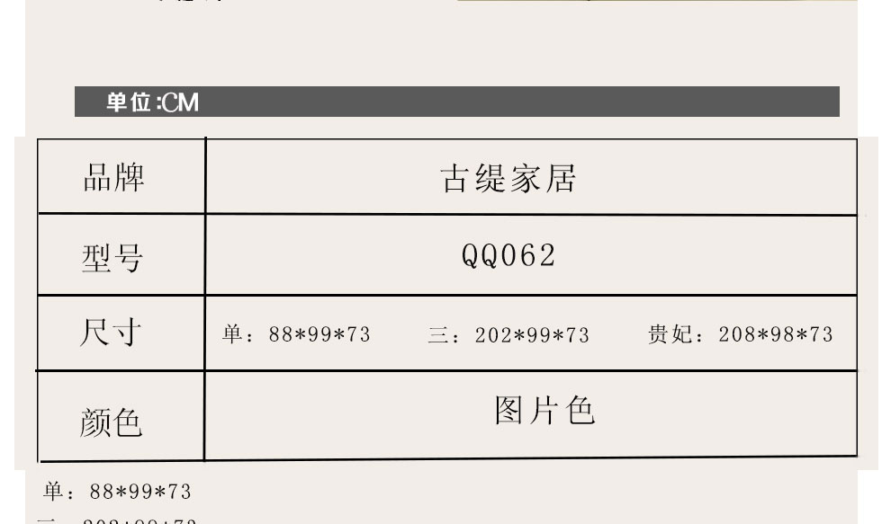 简单大气,适合现代风格,反正以后结婚新房我还来买,沙发和描述的一样,漂亮,做工精细,小小的细节就能看到整体的质量。