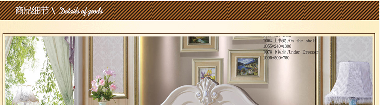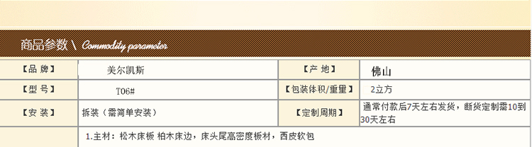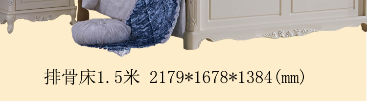 外围尺寸: T06排骨床1.5米2179*1678*1384; T07床头柜594*450*600。