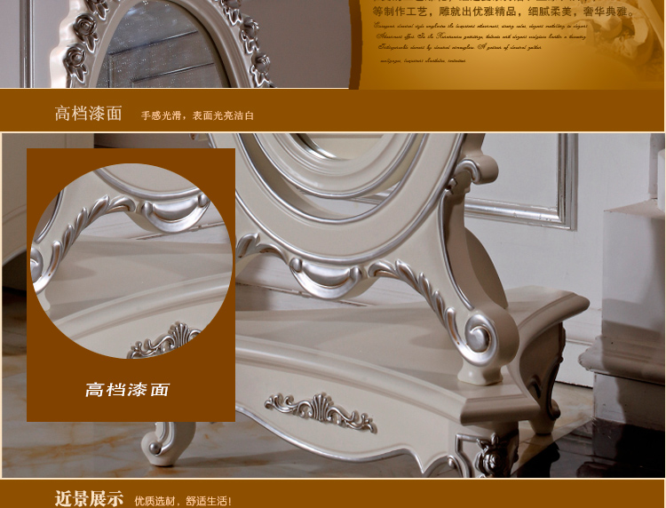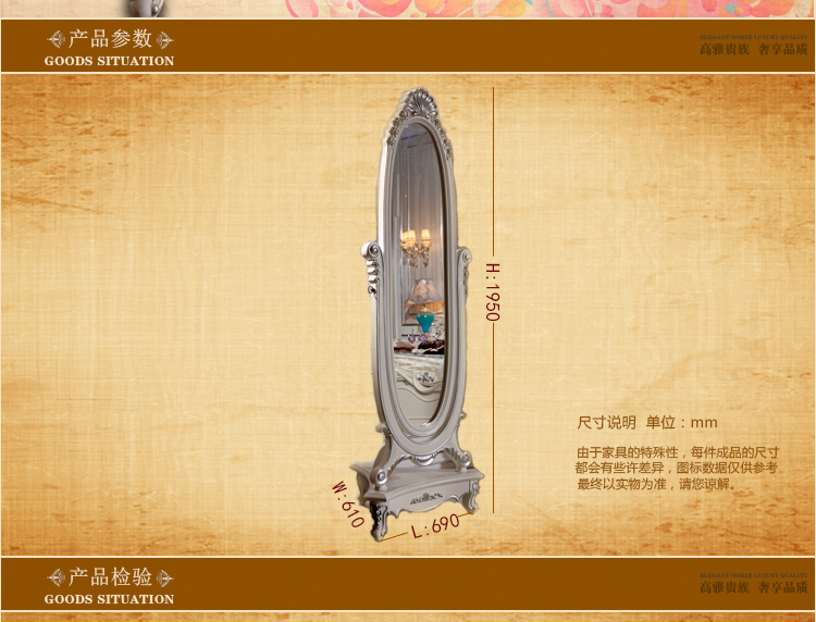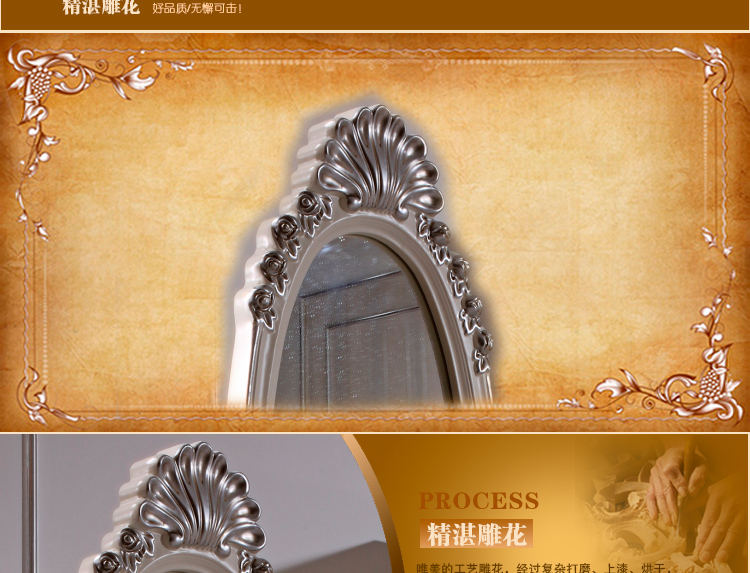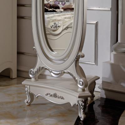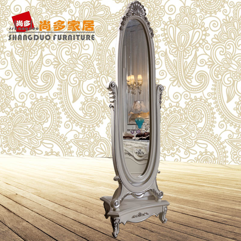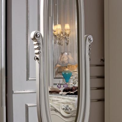 尚多家居 ZJ801 象牙白+银箔做旧法式雕花 卧室 落地式椭圆形穿衣镜全身镜