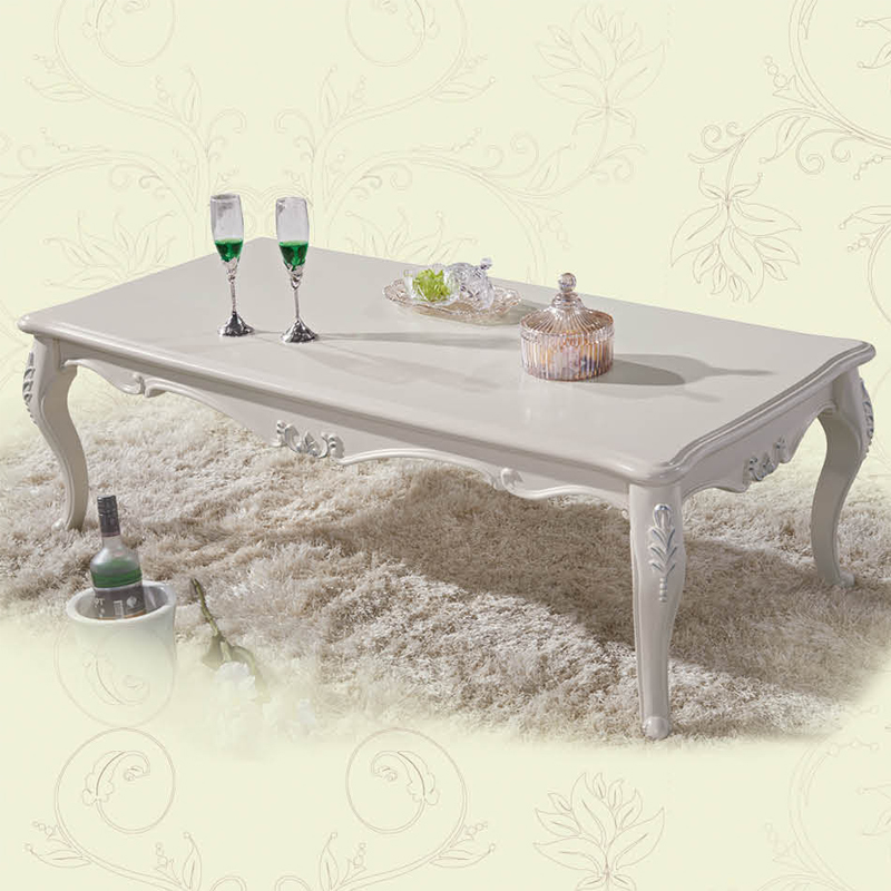 金亿宝欧式风格实木长茶几 奢华雕花白色唯美客厅放置茶几K05
