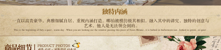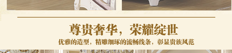 欧式风格家具特点讲究手工精细的裁切雕刻,轮廓和转折部分由对称而富有节奏感的曲线或曲面构成,结构简练,线条流畅,色彩富丽,艺术感强,给人的整体感觉是华贵优雅,十分庄重。