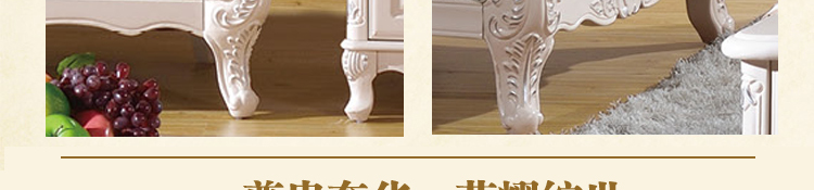欧式风格家具特点讲究手工精细的裁切雕刻,轮廓和转折部分由对称而富有节奏感的曲线或曲面构成,结构简练,线条流畅,色彩富丽,艺术感强,给人的整体感觉是华贵优雅,十分庄重。