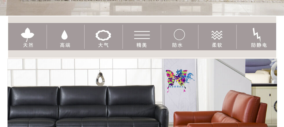 沙发非常漂亮,款式简单大方,真皮材质,坐着软硬适中。