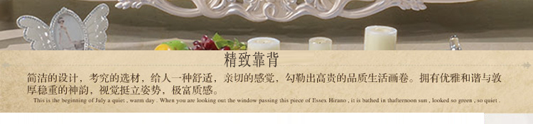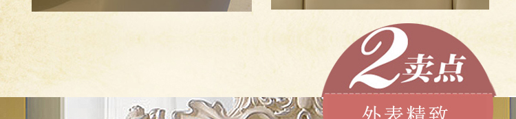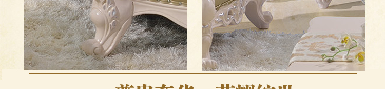 欧式风格家具特点讲究手工精细的裁切雕刻,轮廓和转折部分由对称而富有节奏感的曲线或曲面构成,结构简练,线条流畅,色彩富丽,艺术感强,给人的整体感觉是华贵优雅,十分庄重。
