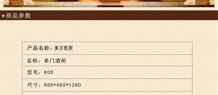 金亿宝美尔凯斯系列 欧式单门酒柜简约现代实木酒柜装饰展示柜客厅柜子K09