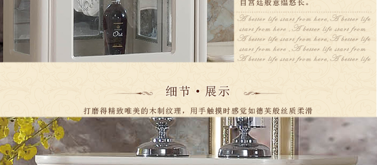 采用美国认证高标准原木为主材;经济实惠又环保。国内知名设计师独家设计;中西方文化合并的极致之做;具有中式的节约;同时也不失西式的华贵优雅;十分庄重。一流的工艺水准,坚实稳固,经典隽永;线条流畅,曲致玲珑;衬托家中风格韵味!