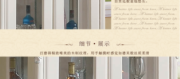 采用美国认证高标准原木为主材;经济实惠又环保。国内知名设计师独家设计;中西方文化合并的极致之做;具有中式的节约;同时也不失西式的华贵优雅;十分庄重。一流的工艺水准,坚实稳固,经典隽永;线条流畅,曲致玲珑;衬托家中风格韵味!