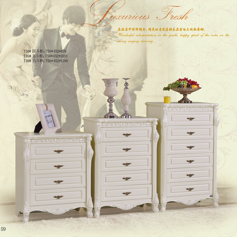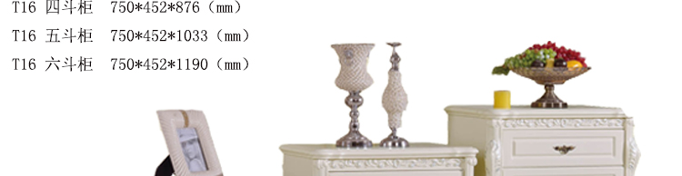 外围尺寸: T16四斗柜750*452*876; T16五斗柜750*452*1033; T16六斗柜750*452*1190。
