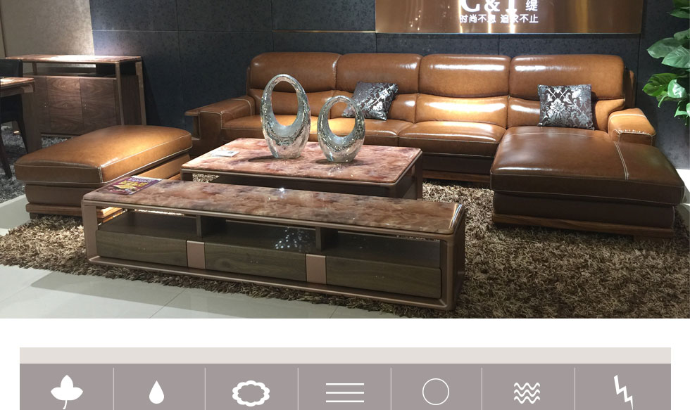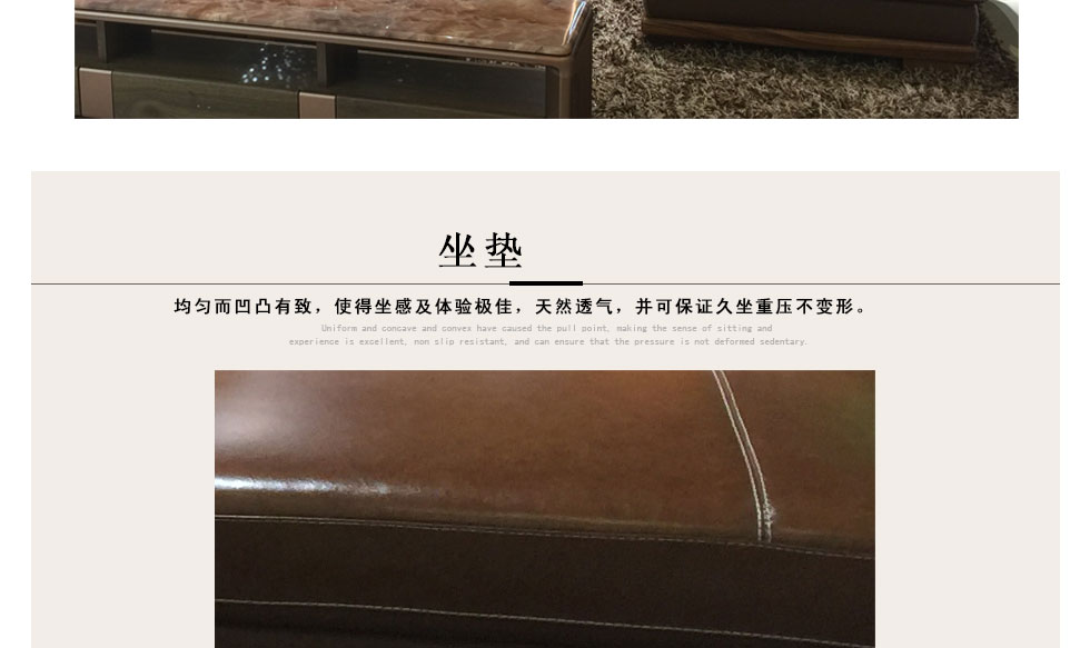 沙发很雅致上档次,皮质很有质感,做工很精细.