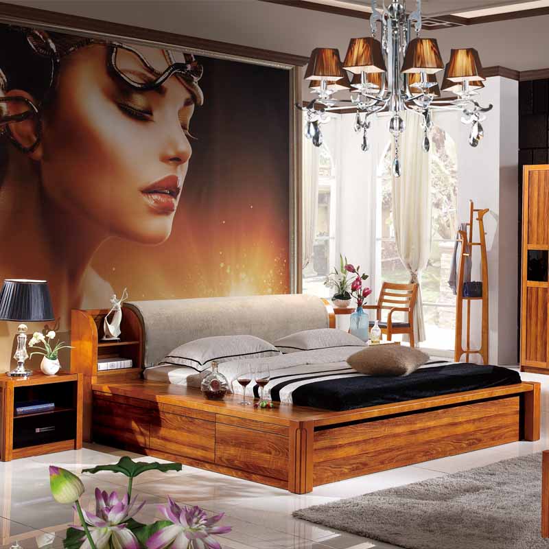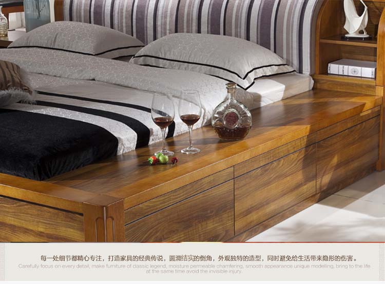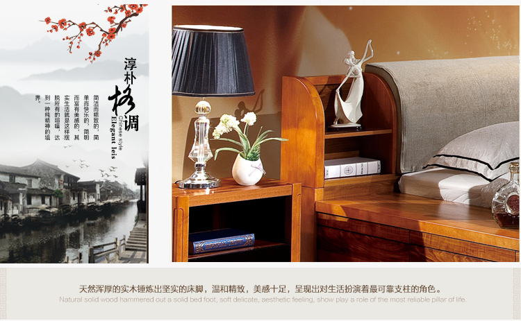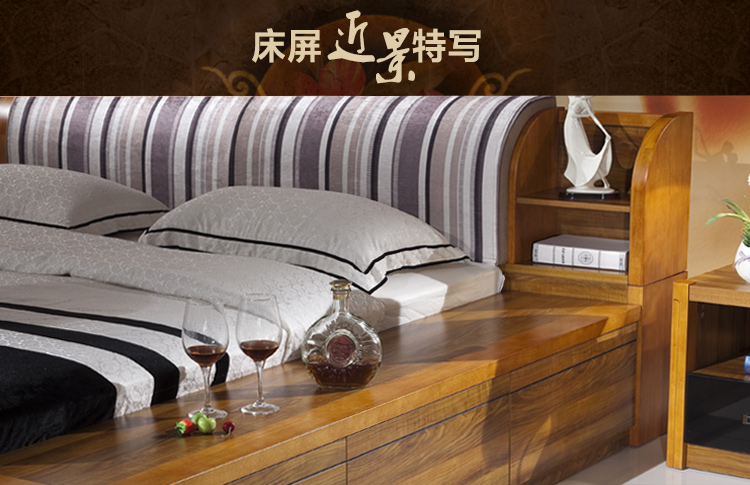 达人居 实木床 1.8双人婚床现代简约中式全实木家具6a06