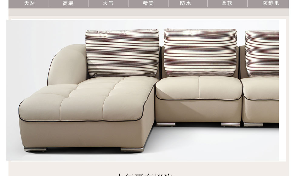 沙发整体很大气,皮质手感不错,厚度适中,细节处理的不错,颜色大气沉稳,适合客厅的风格,这款沙发满意