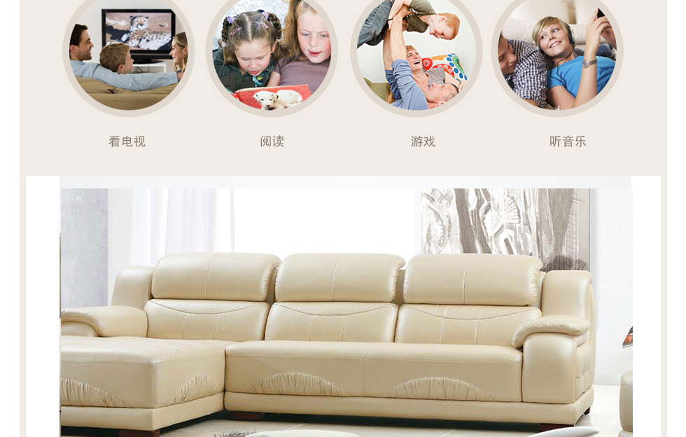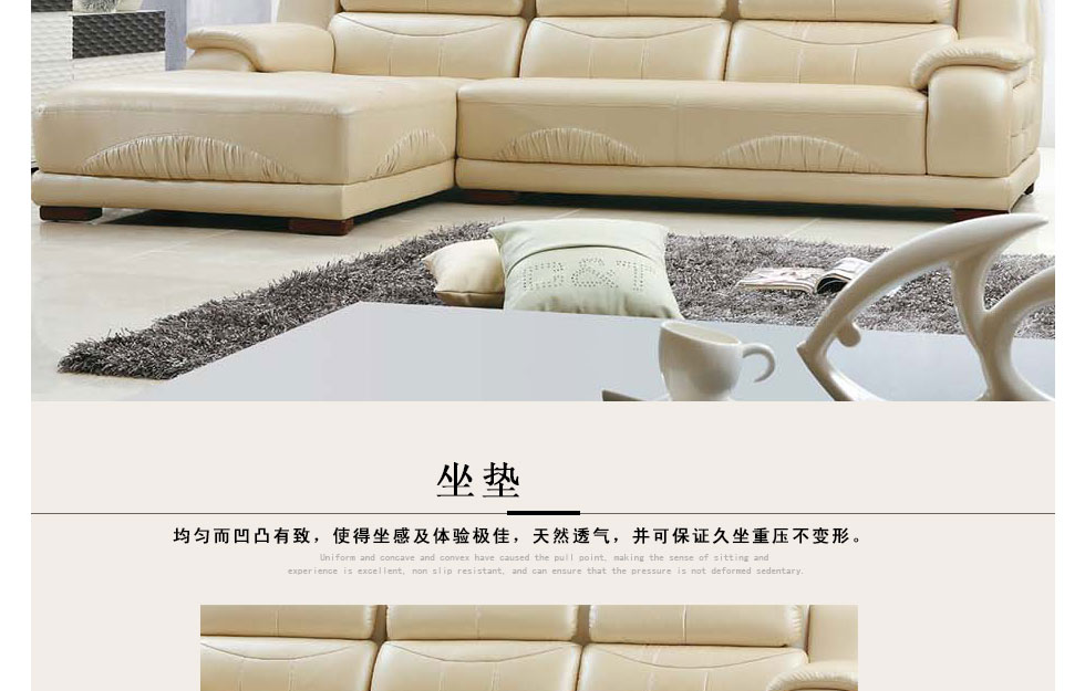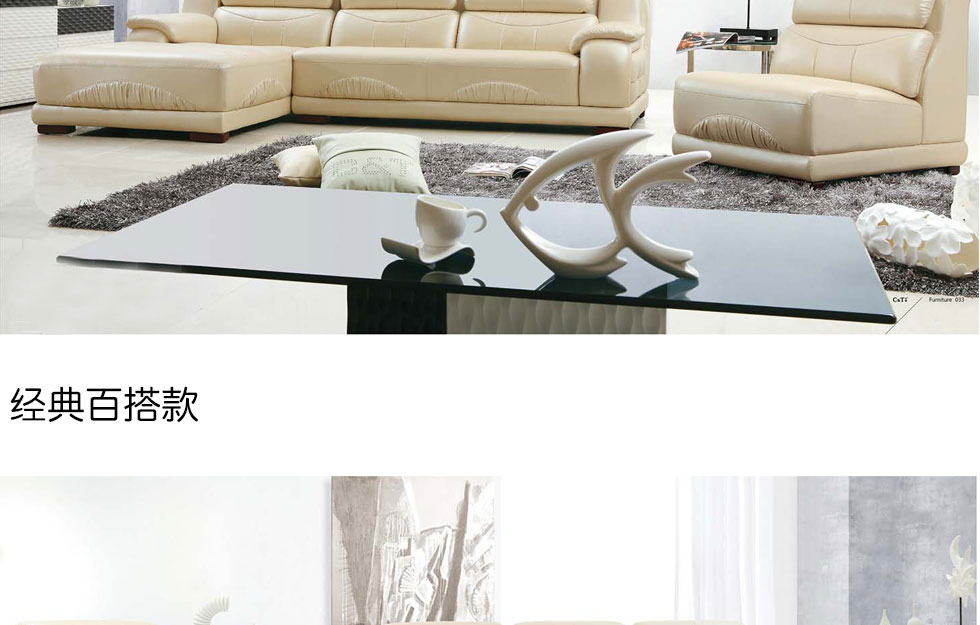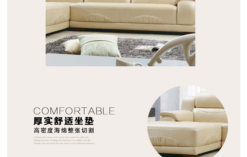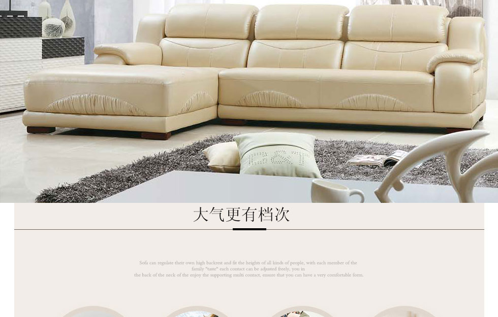 古缇家居 现代客厅组合沙发头层牛皮 皮艺沙发黄牛真皮沙发 QQ868A