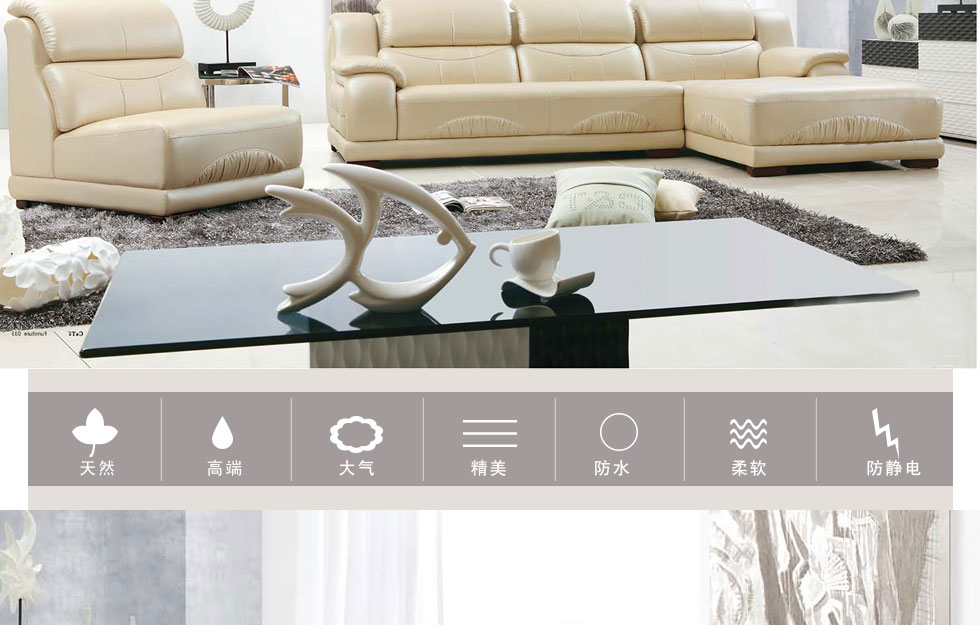 沙发收到了,皮质挺好的,发货及时,摆在客厅很上档次.