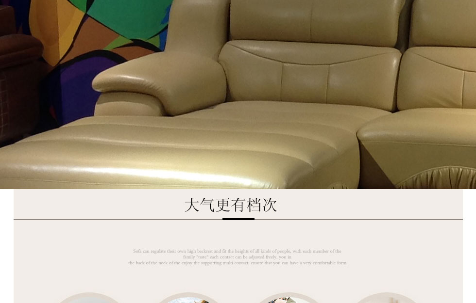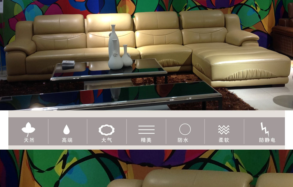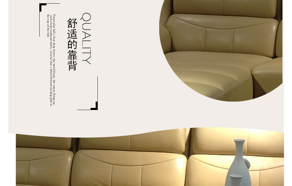 沙发很雅致上档次,皮质很有质感,做工很精细.