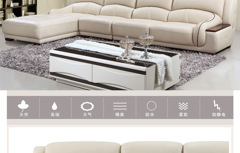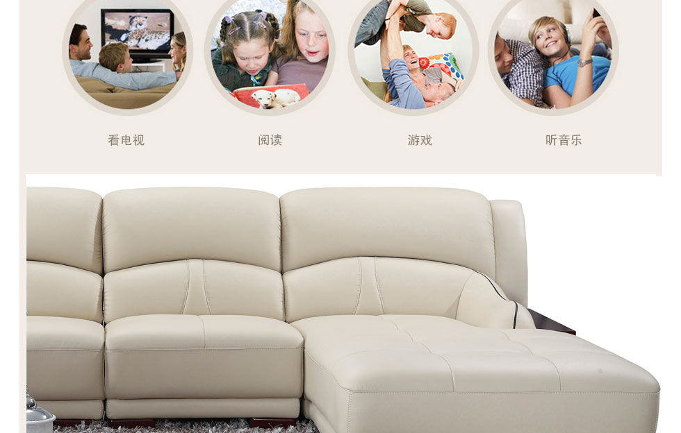古缇 真皮沙发大小户型客厅家具转角皮艺沙发组合 头层牛皮QQ888